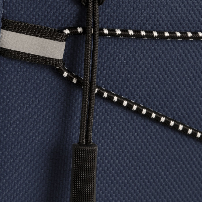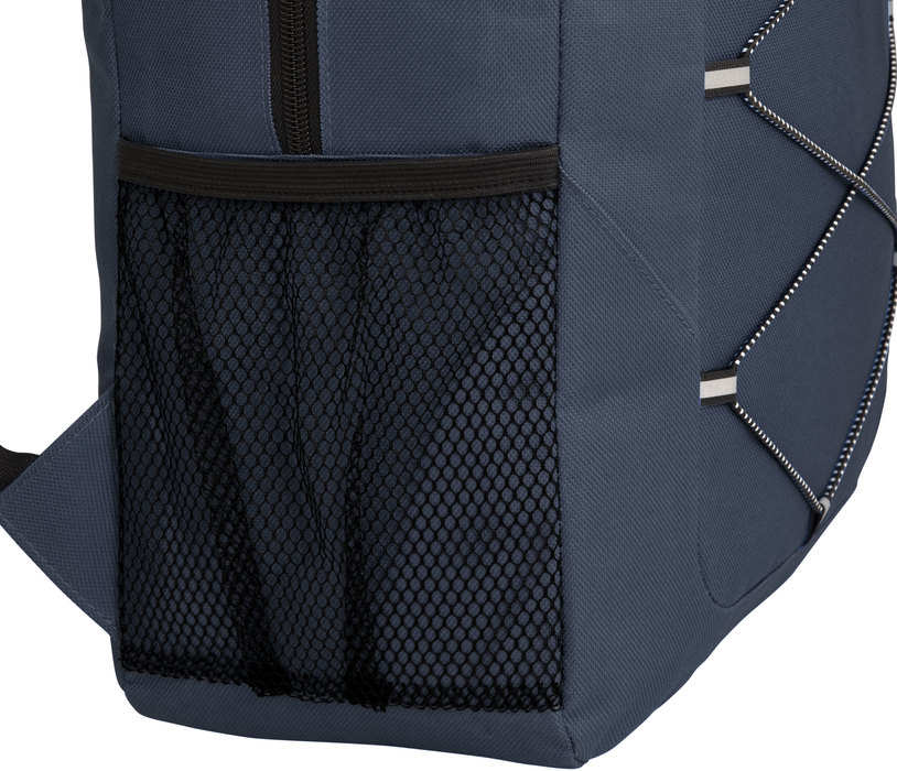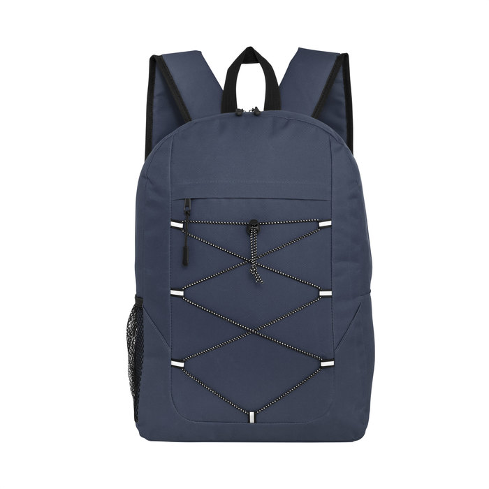 Mochila outdoor. Compartimento principal con doble cierre. Bolsillo frontal con cierre, cordón elástico cruzado ajustable y un bolsillo de red lateral para transportar botellas. Detalles reflectivos. Cierres metálicos con tiradores de goma. Correas regulables y espalda acolchadas.